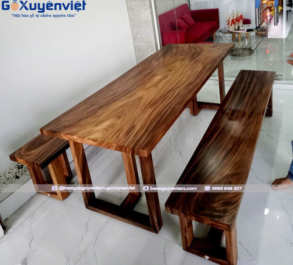 Sự kết hợp hài hòa giữa bàn và ghế gỗ me tây đẹp tạo nên tổng thể thống nhất, tôn lên sự sang trọng của không gian sống.