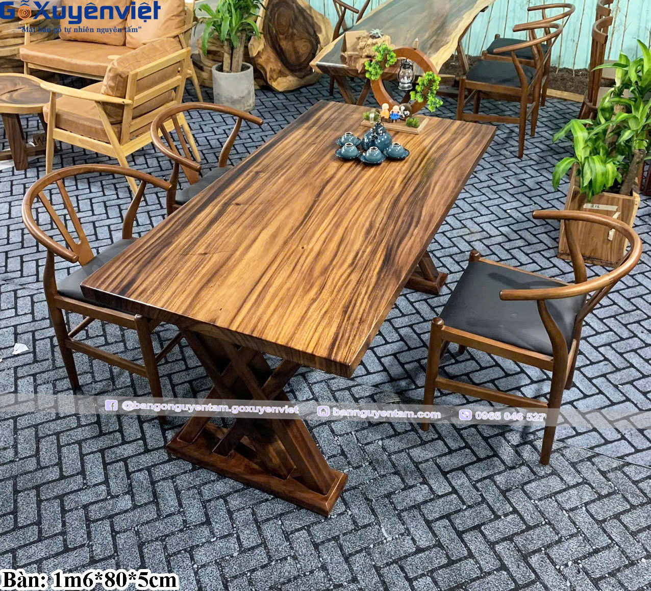 - Vân gỗ độc đáo: Từng chiếc ghế gỗ me tây mang trên mình nét vân gỗ mộc mạc nhưng không kém phần tinh tế, khiến không gian trở nên sang trọng và ấm cúng.